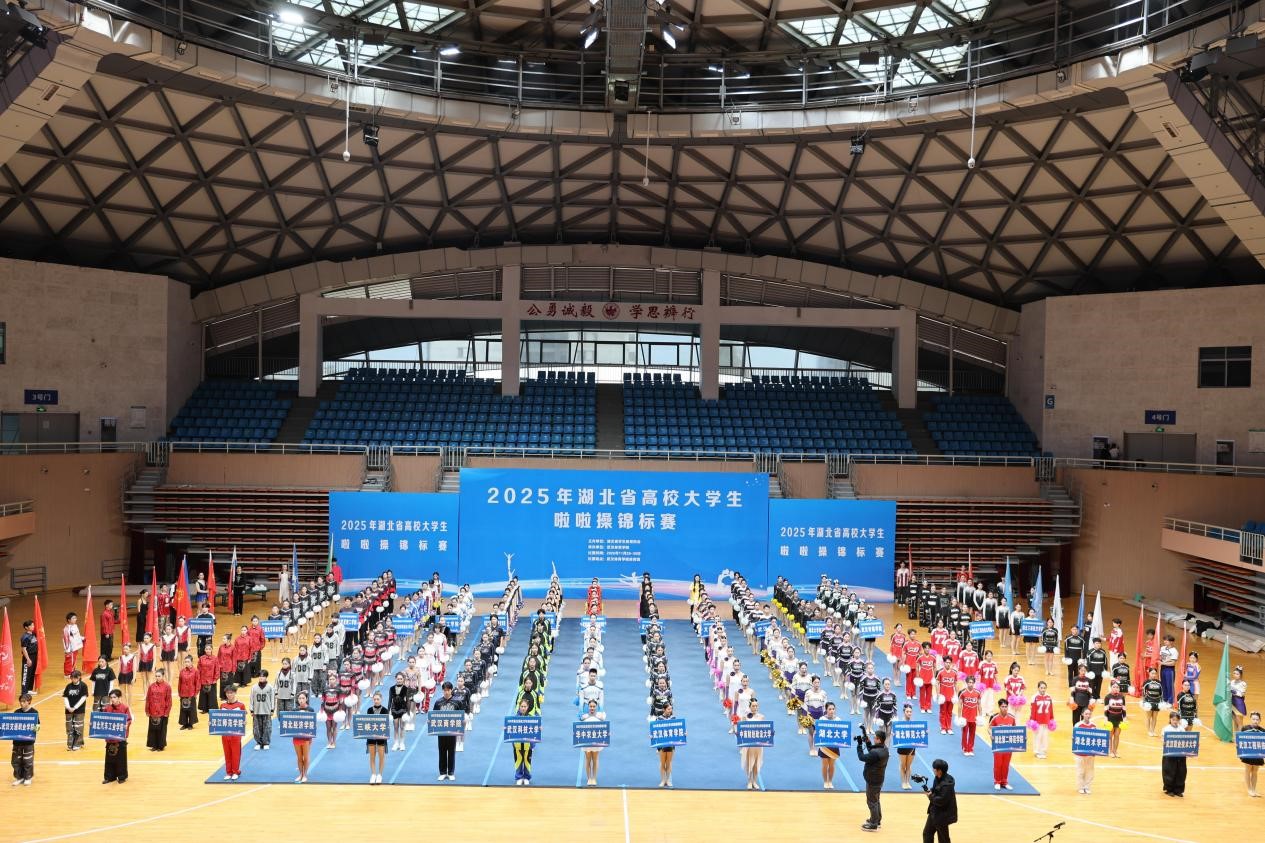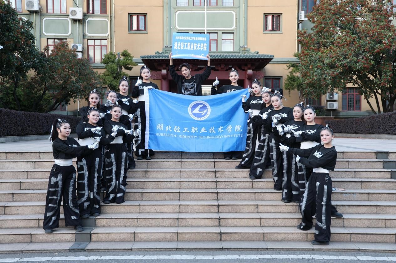(公共课部体育教研室 王俊丽 讯)11 月 28 日至 30 日,由湖北省学生体育协会主办、武汉体育学院承办的 2025 年湖北省高校大学生啦啦操锦标赛在武汉体育学院体育馆热力启幕。本次赛事作为湖北省高校体育领域的年度盛会,吸引了全省 37 所高校的 1000 余名参赛选手齐聚赛场。选手们以蓬勃朝气彰显啦啦操运动的独特魅力,用整齐舞姿书写当代大学生的青春华章。湖北轻工职业技术学院街舞啦啦操队伍凭借出色表现,以精湛技艺与饱满热情在集体街舞规定套路项目中脱颖而出,一举斩获第一名佳绩,为学校赢得荣誉。